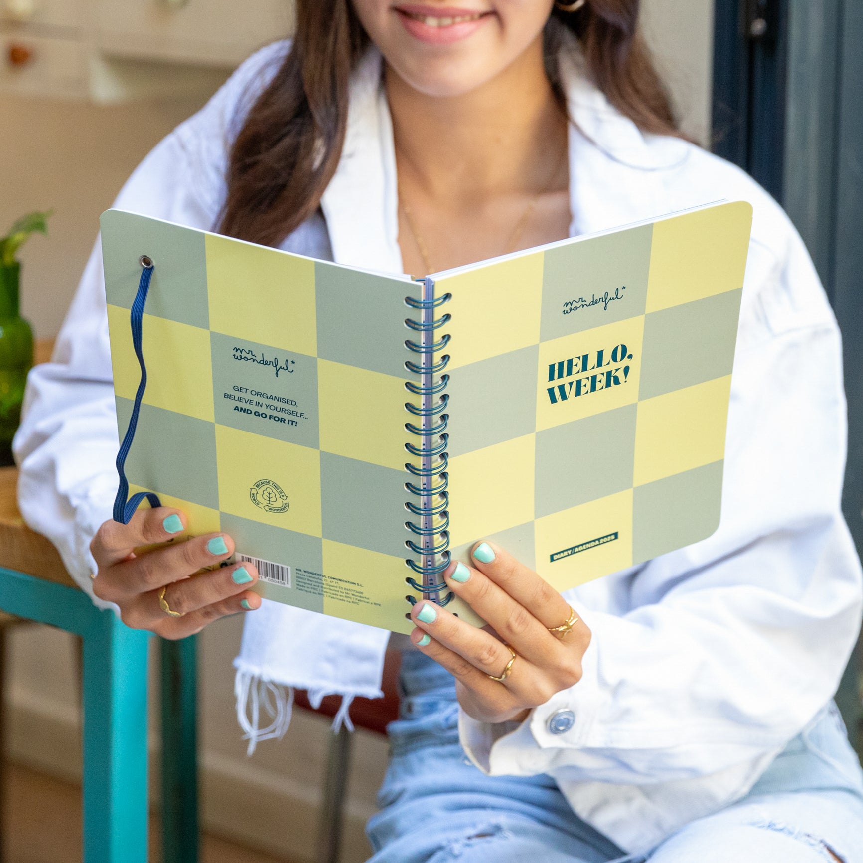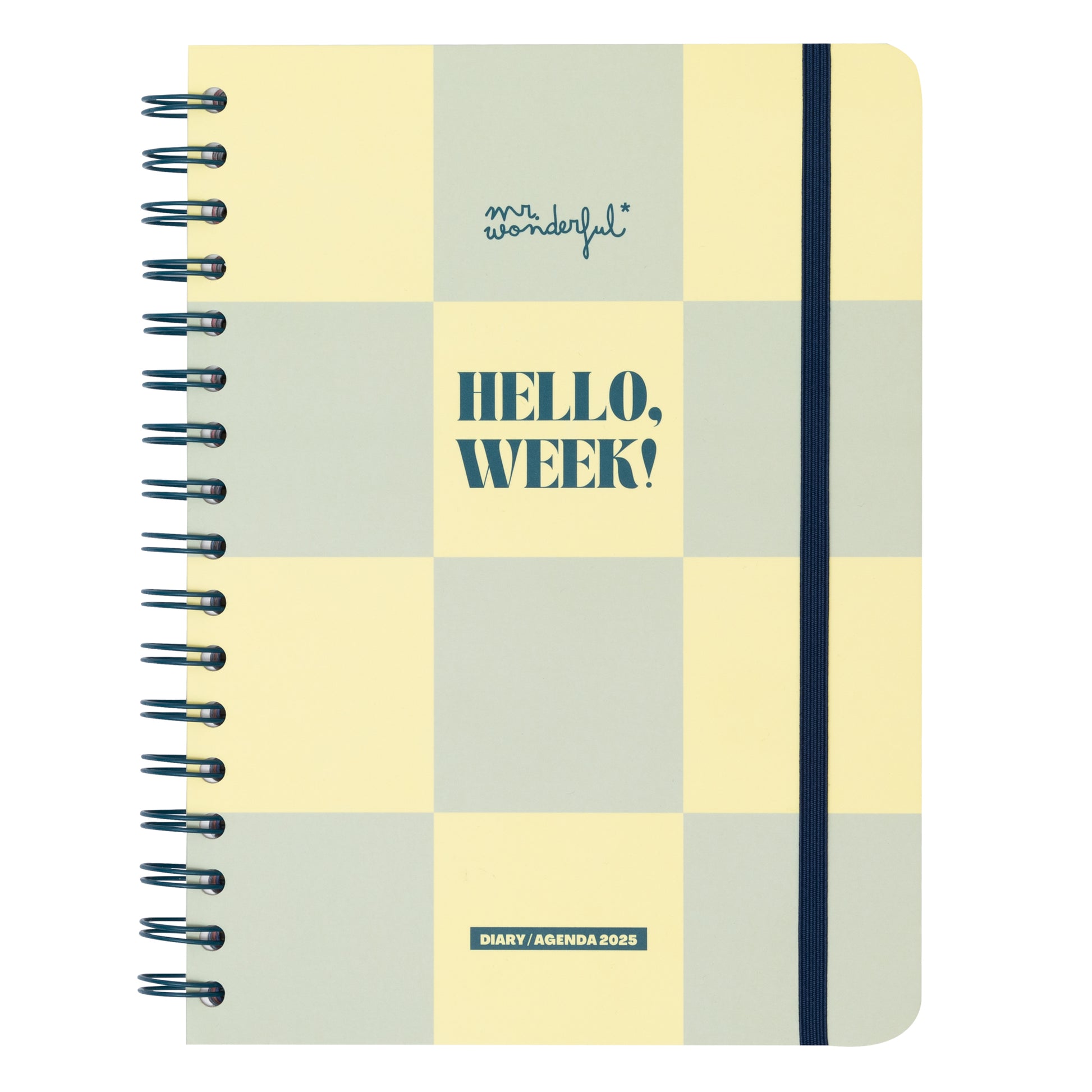 Agenda de organização semanal simples e básica, com menos extras do que as outras agendas Mr. Wonderful. Vai de janeiro a dezembro de 2025.