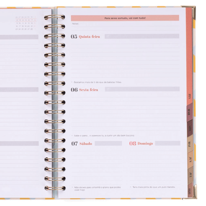 Organizada numa base diária, a agenda vai do final de setembro de 2025 ao final de agosto de 2026 e contém: