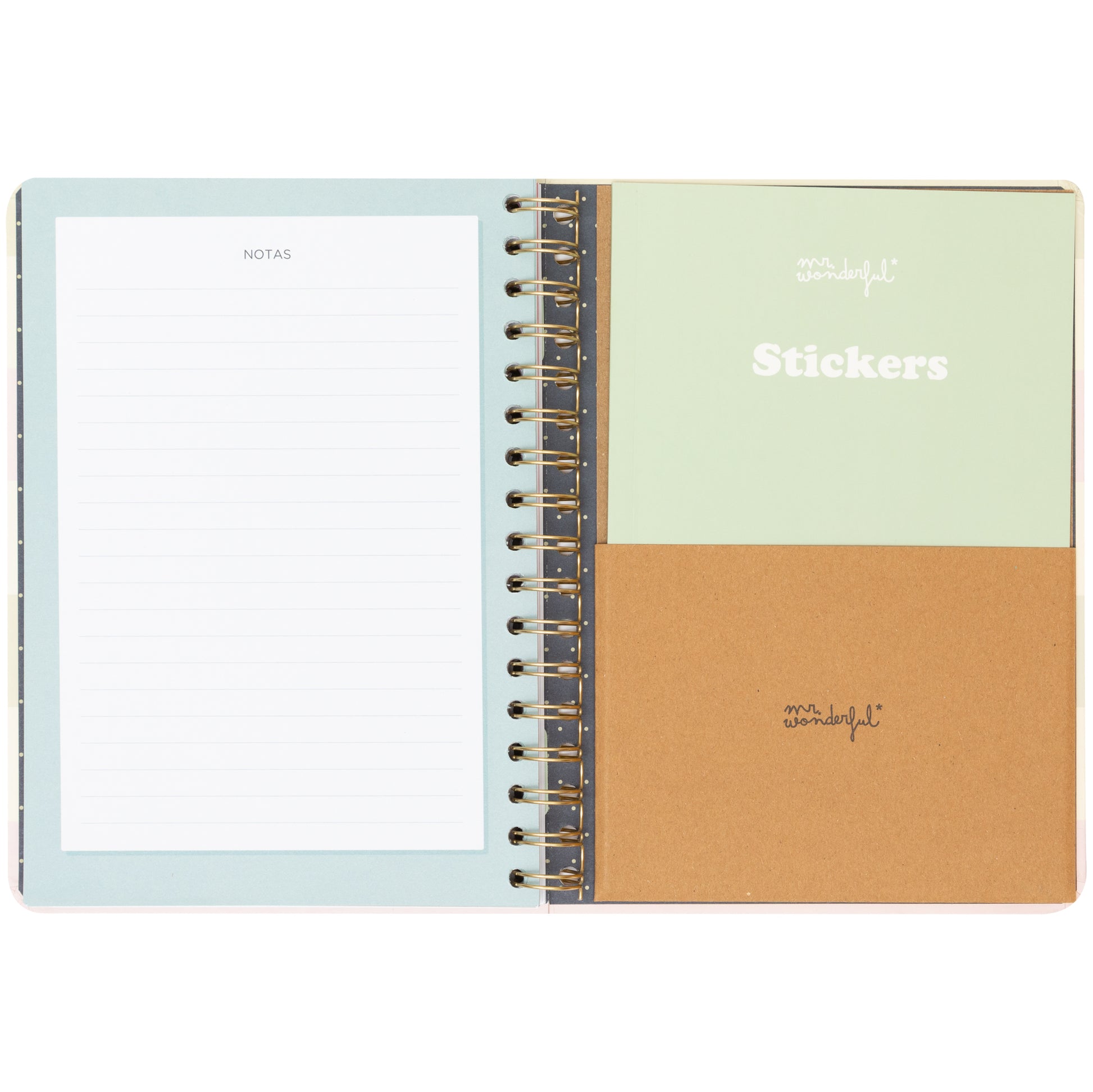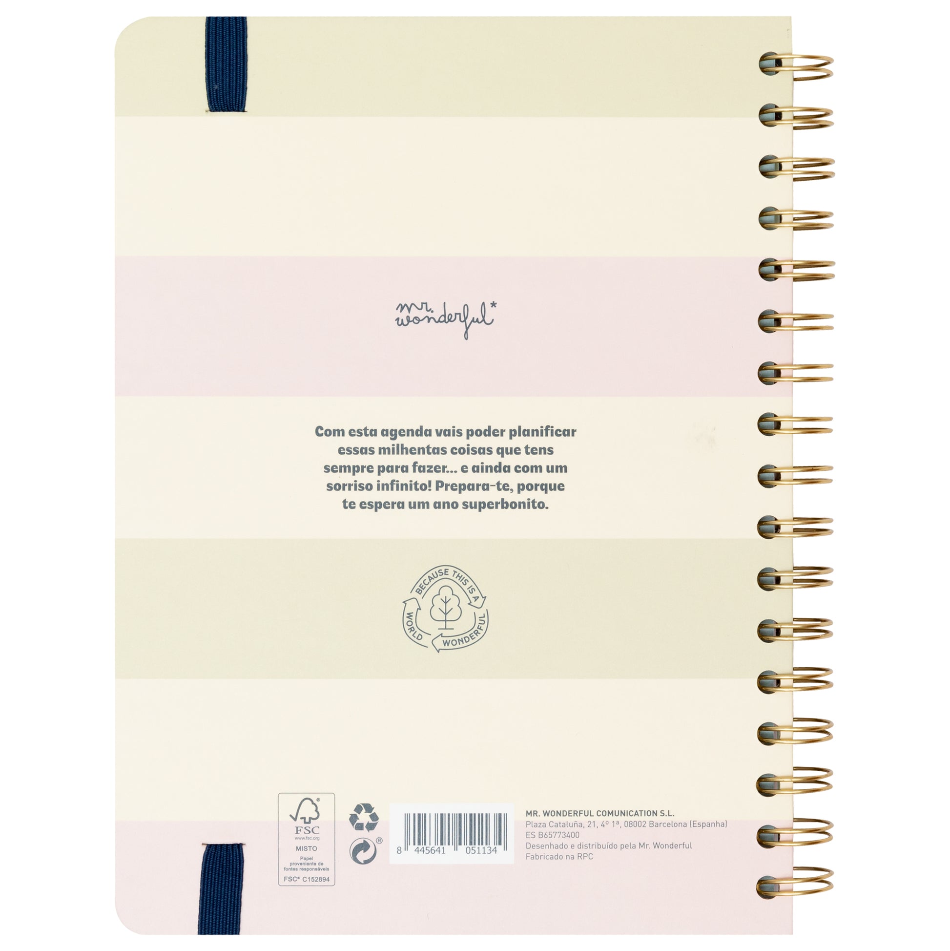 Agenda de organização semanal simples e básica, com menos extras do que as outras agendas Mr. Wonderful.