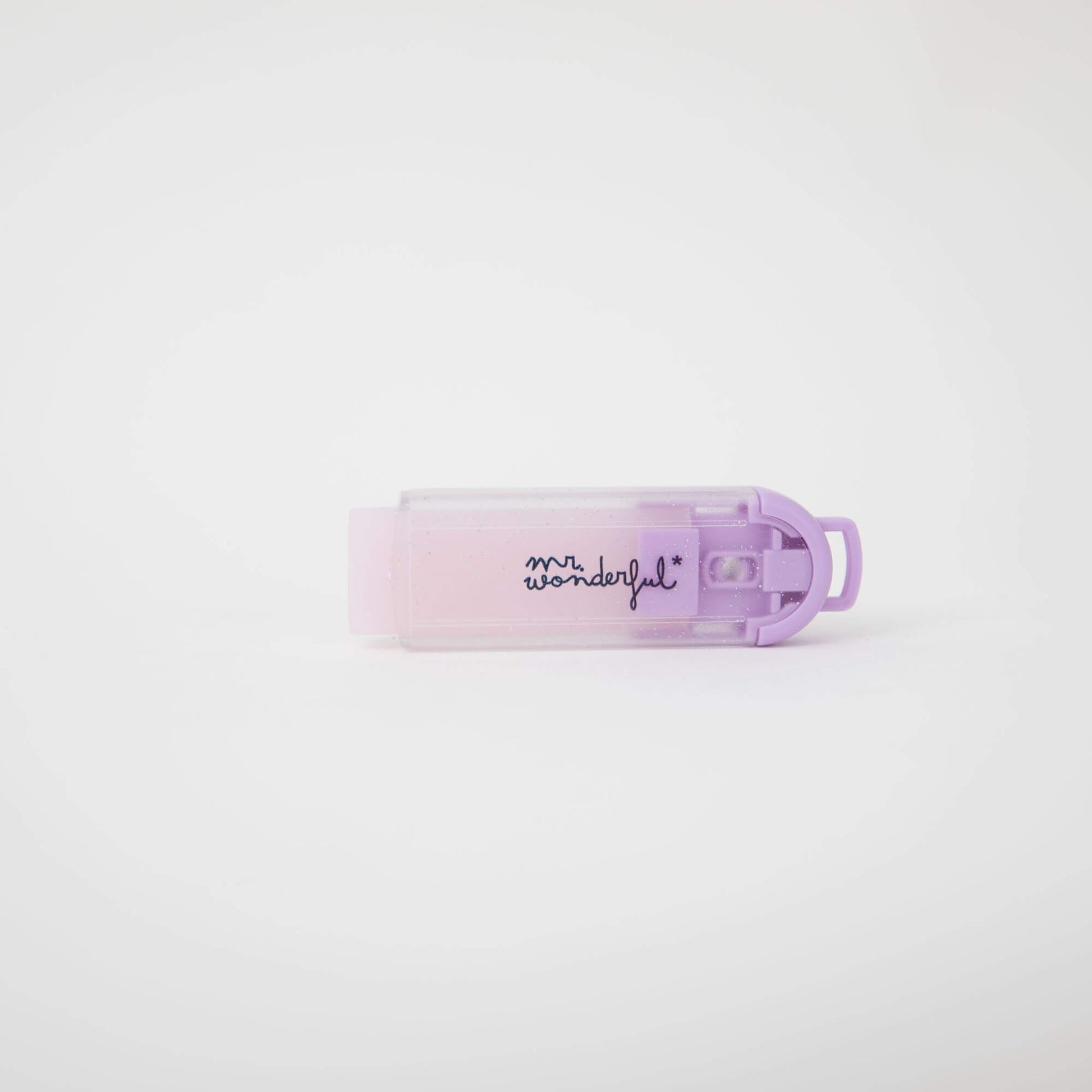 Borracha inserida numa capa com roda doseadora, para que possas dispensar a quantidade necessária conforme fores usando. Borracha com glitter! ✨