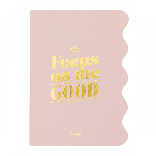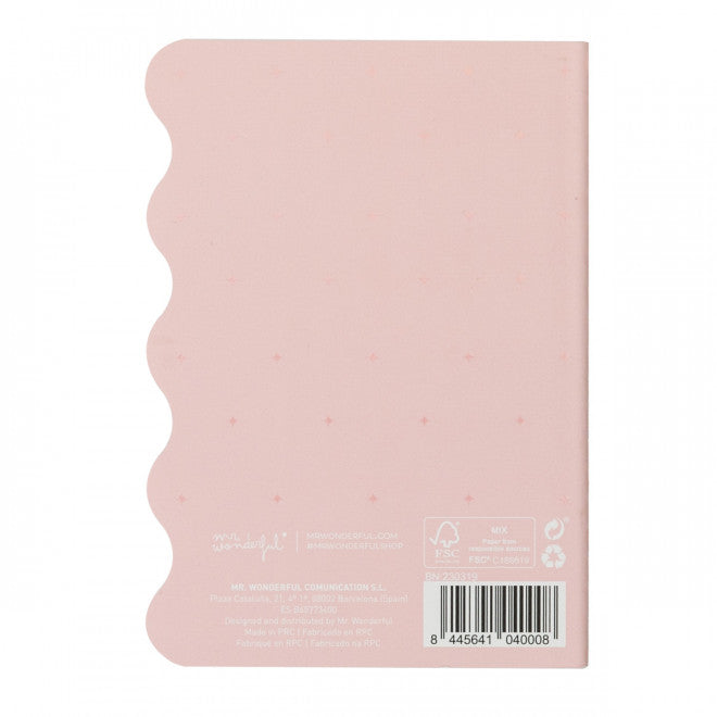 Caderno pequeno de tamanho A6, ideal para trazer na carteira ou na mochila.