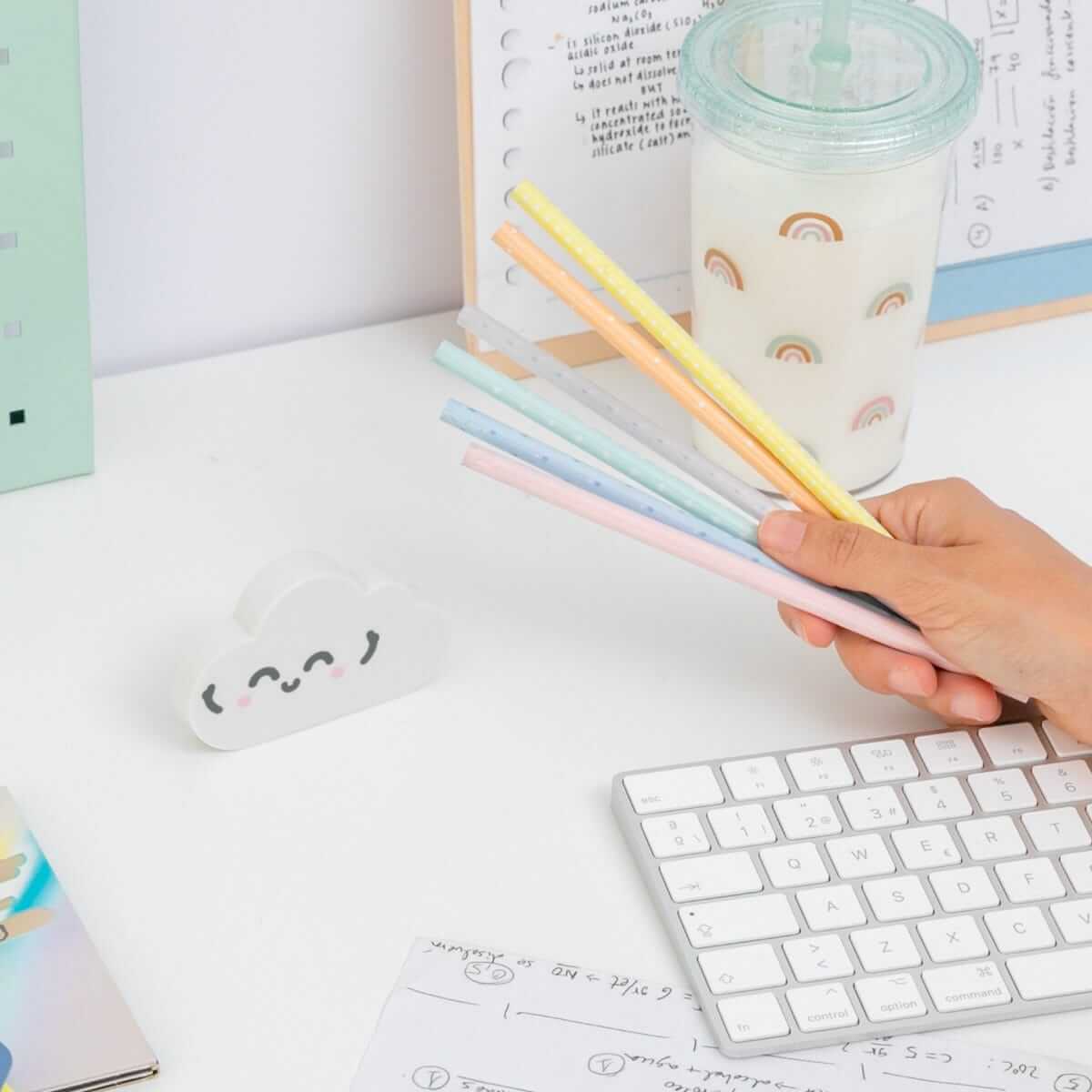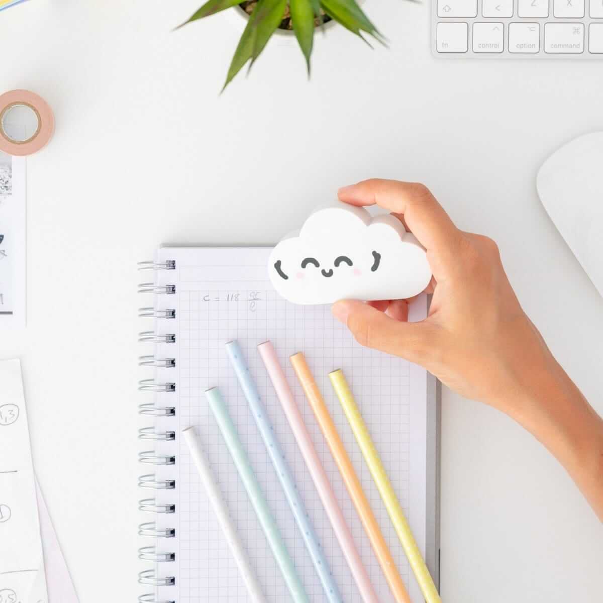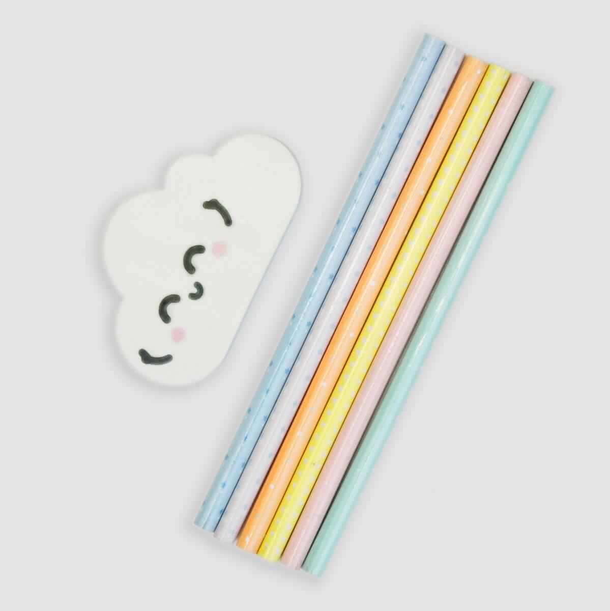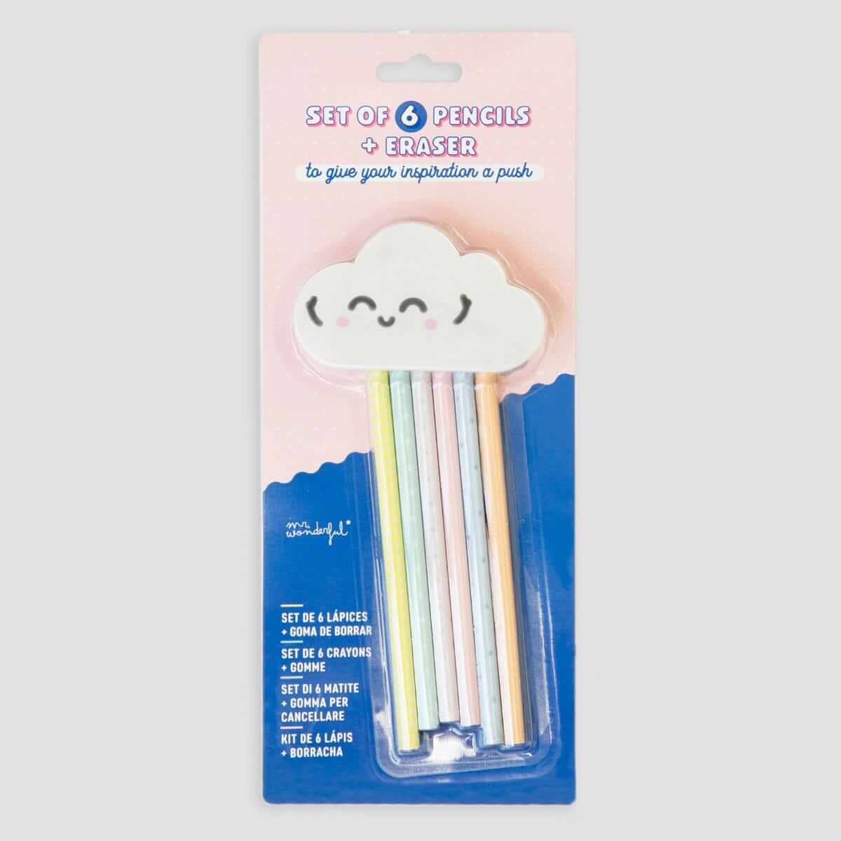 Conjunto de 6 lápis e uma borracha grande, em forma de nuvem Mr. Wonderful.