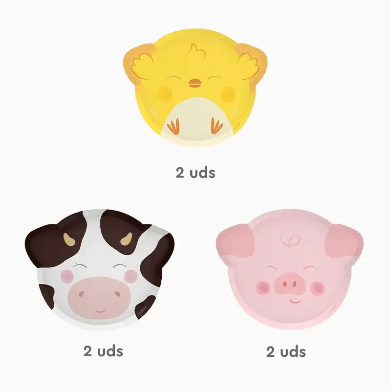 🐄🐤🐖 6 Pratos de cartão da Quinta