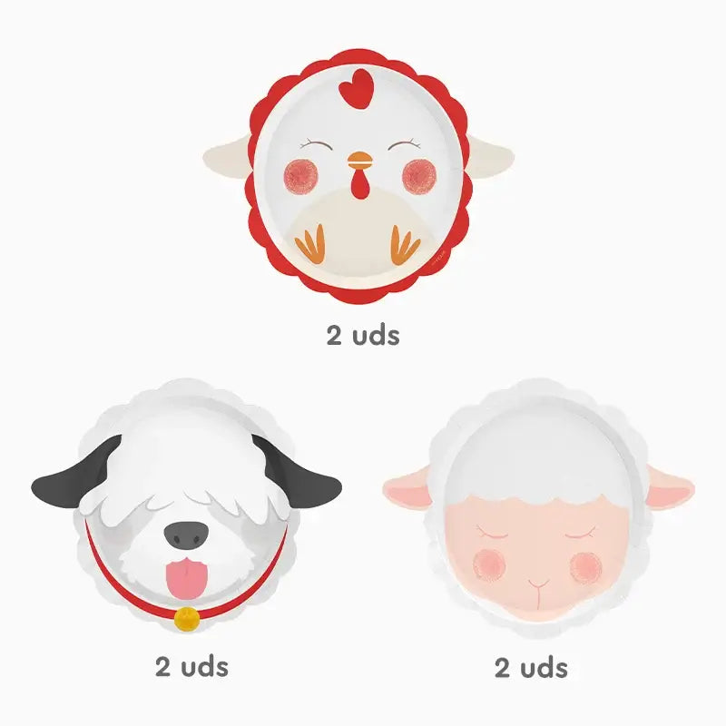 🐄🐤🐖 6 Pratos de cartão da Quinta